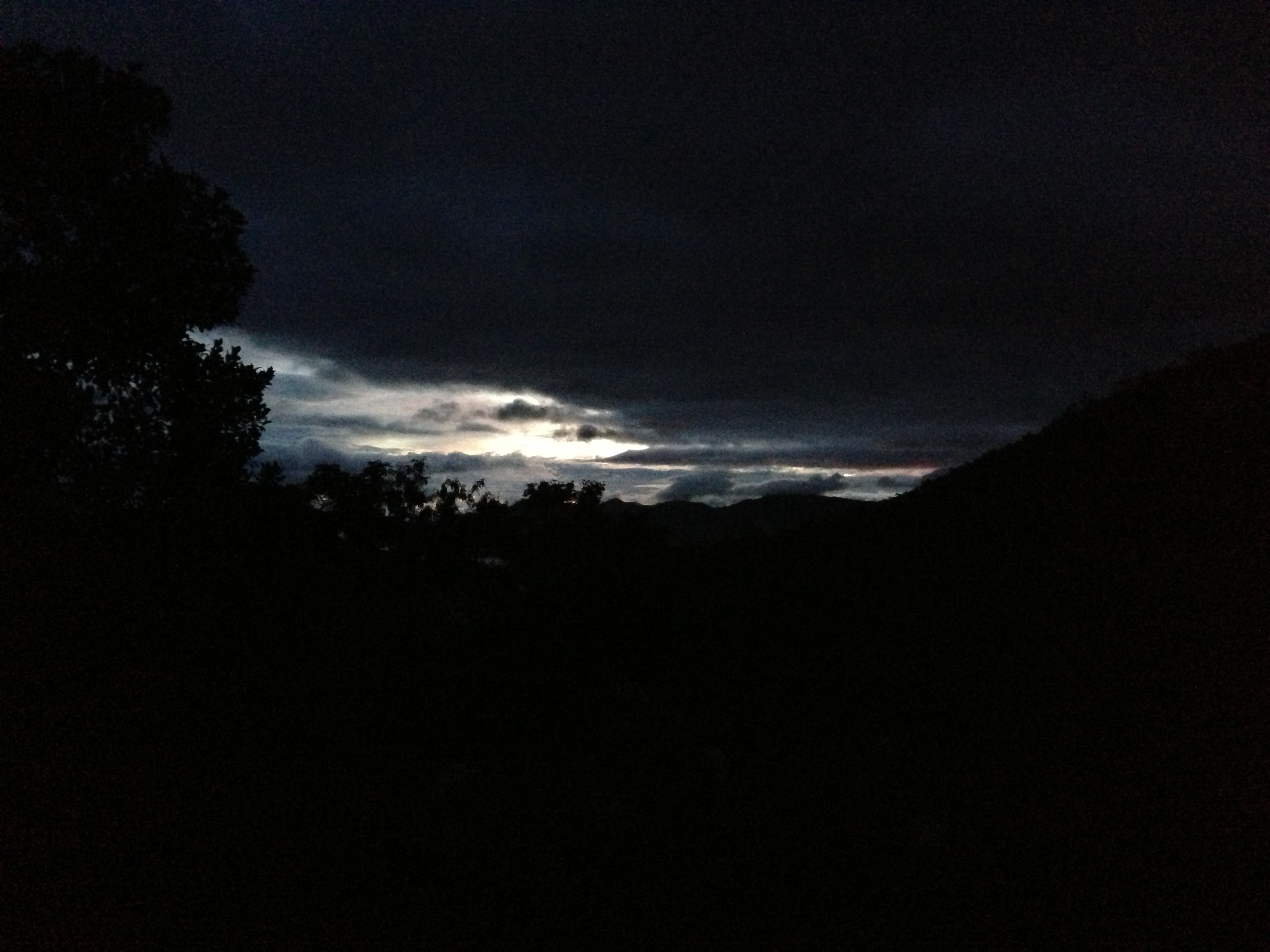 In part one of Night Hike: Your intrepid hero (me) waded through the jungle in a heavy storm with his trusty umbrella and four comrades: Gemma, The Base Leader, Doc Mexico and Doc Ohio, two pre-med guys, Connie in her inadequate low-top sneakers, and Root, the guide and village renaissance man. When we last left our heroes, the guys were idling by a river. The women were way behind and Root had charged into the dark to look for them.