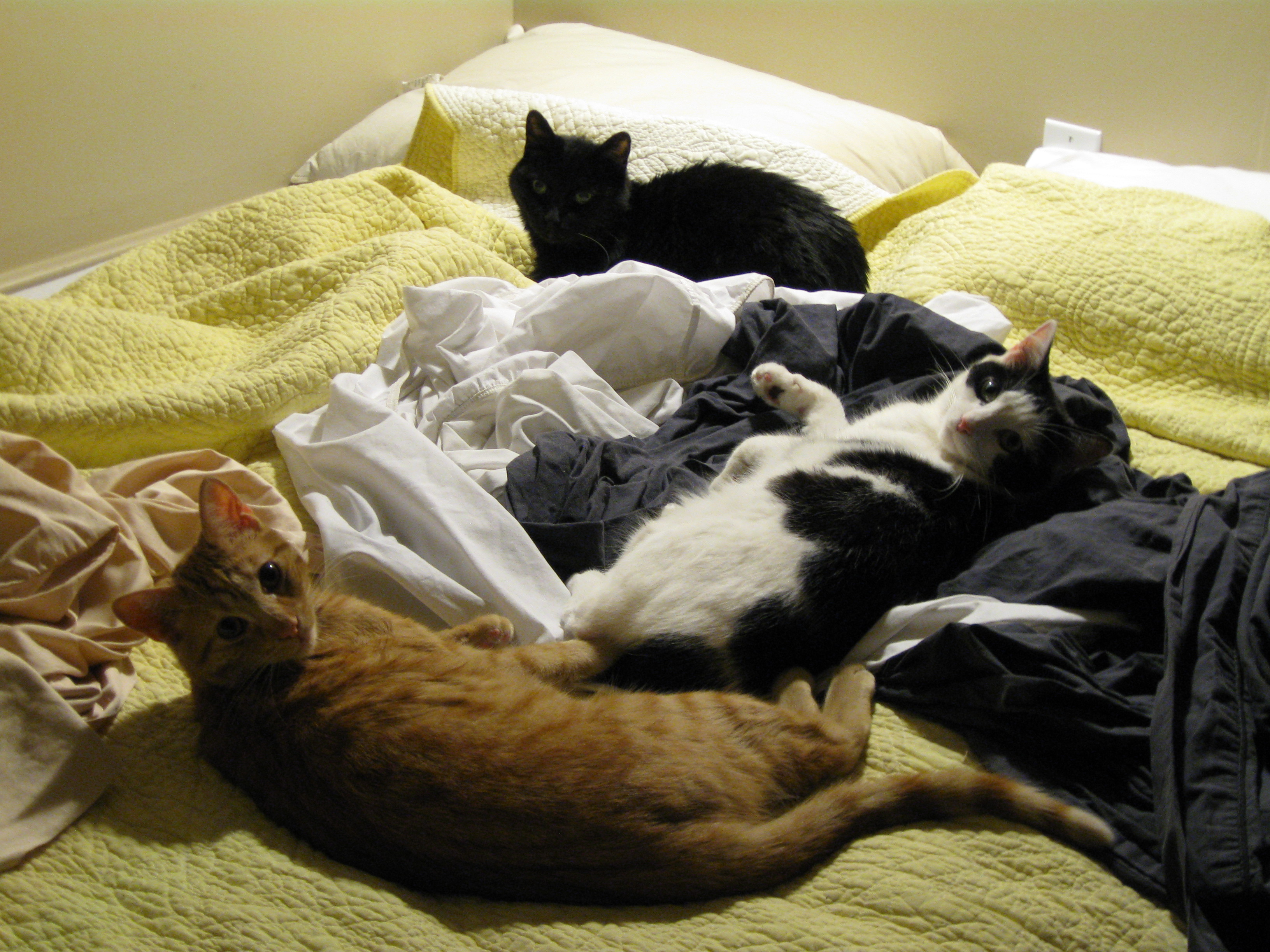 And just so you know it wasn’t always easy for them: Lyle’s first written piece was a barely-readable haiku about choking a bluebird to death. Sundance hid under the bed for the first two days of the Thailand trip. Picasso wasted the first three weeks of his new freedom playing Bejewelled. And Butch for some reason tried to get to second base on only the third date with the girl. Bad kitty.