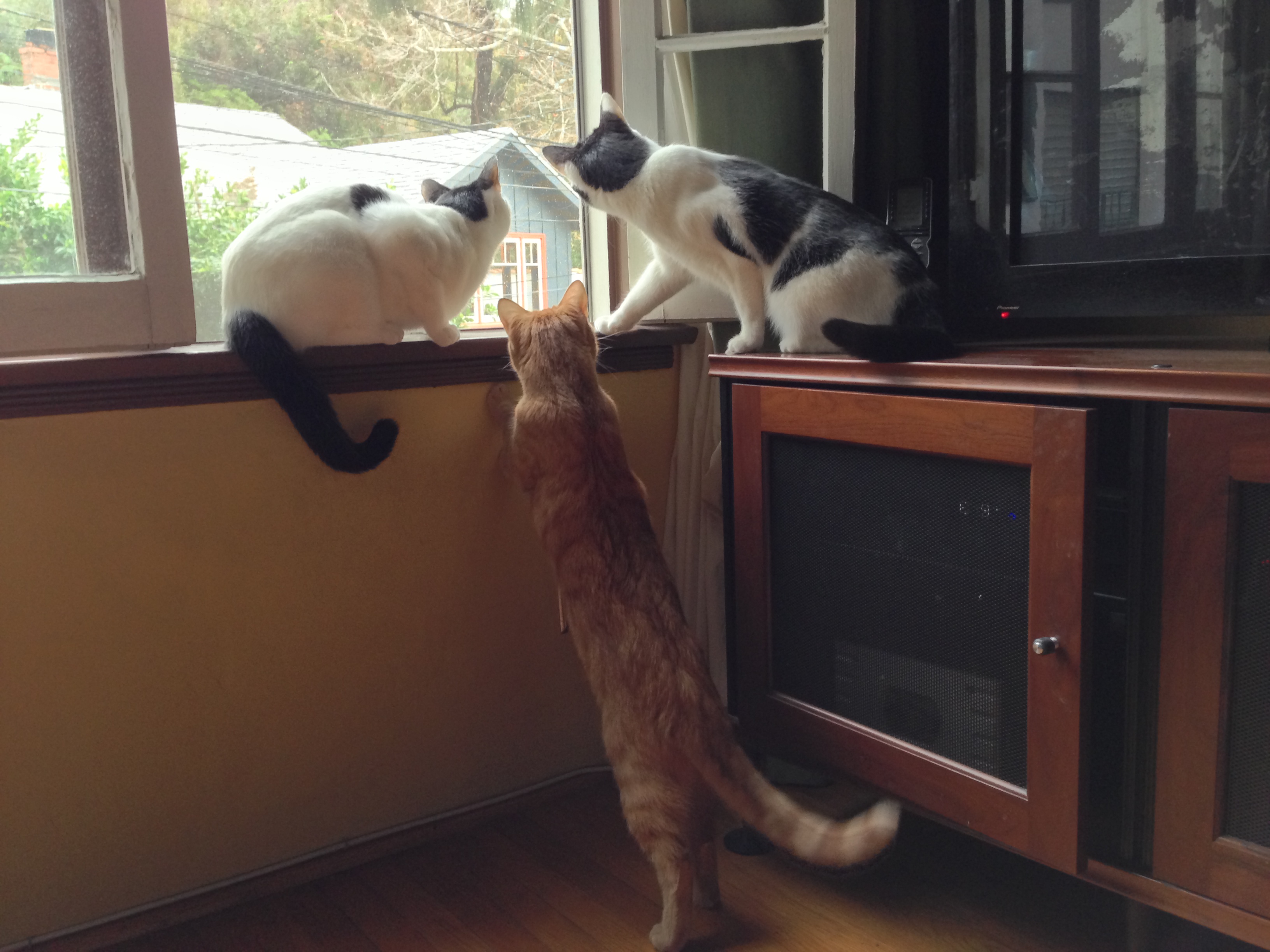Thankfully I have all these wonderful cats, who are fearless and are able to live in the moment. Thankfully they’re around to live my dreams and live my life for me.