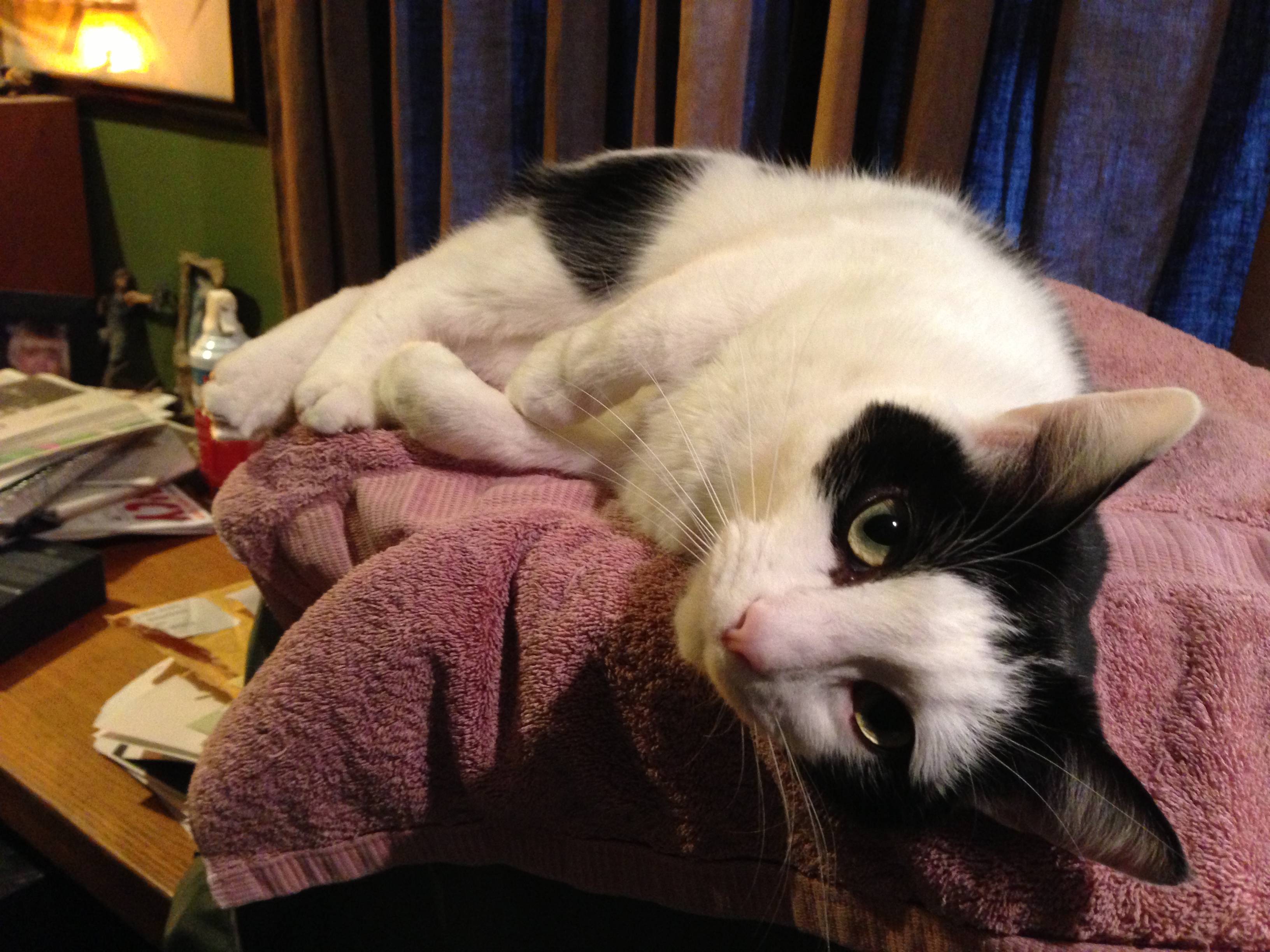 “Yeah, right,” he said, and, after a month-plus away, returned to his favorite sleeping spot, curled up on the printer.